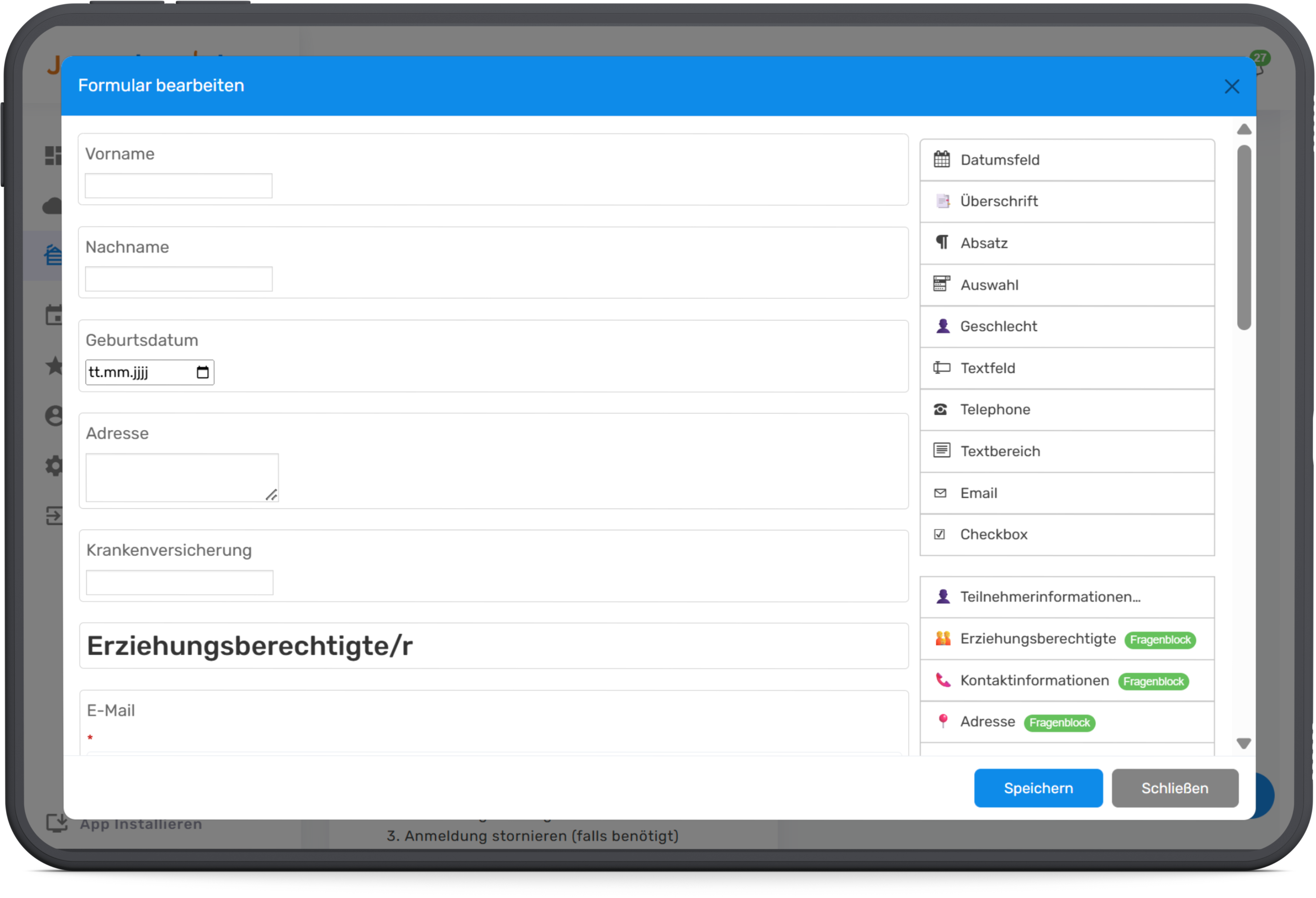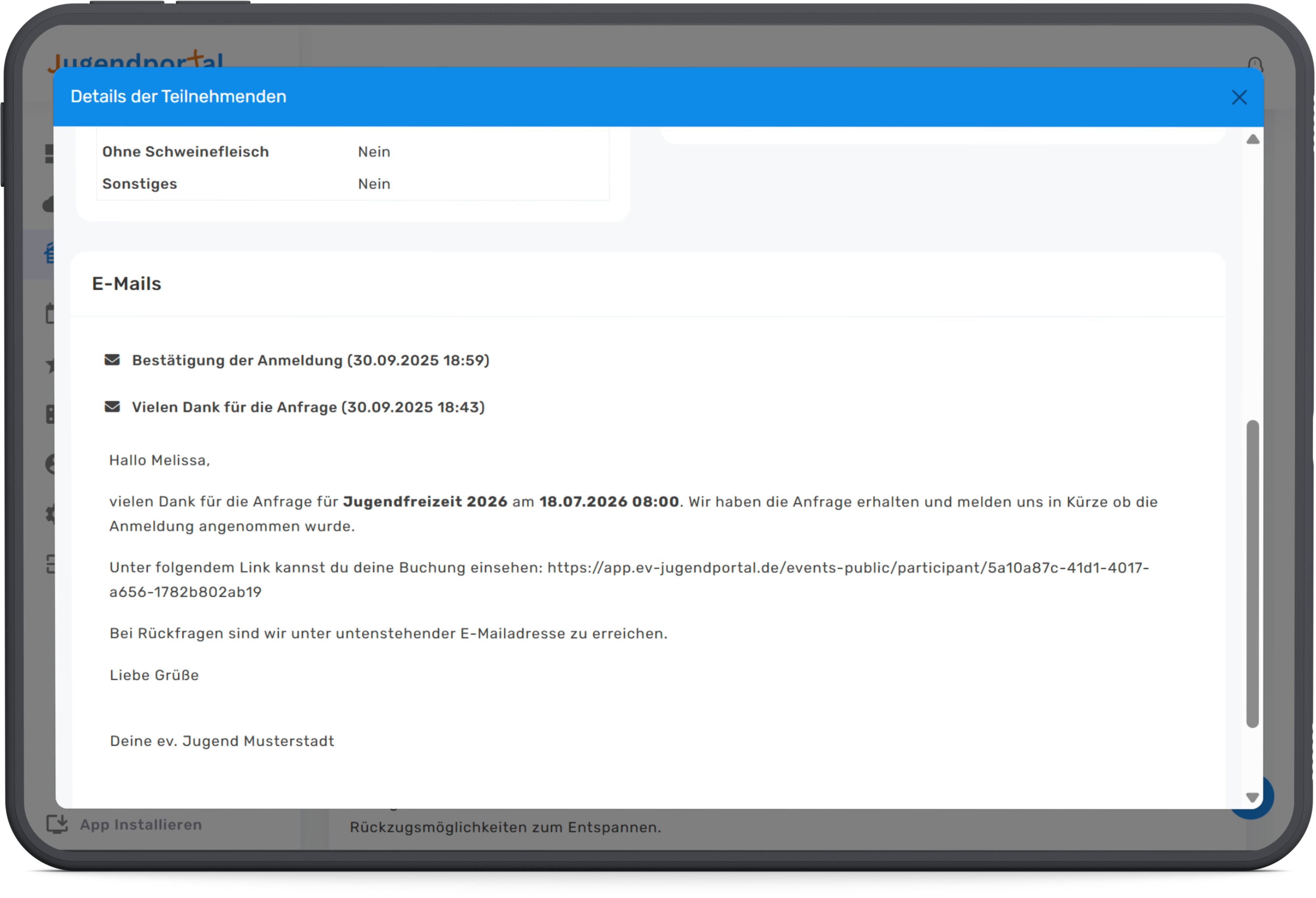 Das Jugendportal ist nicht "nur" ein Anmeldetool, sondern bietet viele weitere Funktionen zur Unterstützung deiner Arbeit mit Jugendlichen. Es ist eine digitale Schaltstelle für die Verwaltung deiner Jugendarbeit und bietet mit seinen Funktionen eine umfassende Unterstützung. Schaus dir doch gerne einmal an.